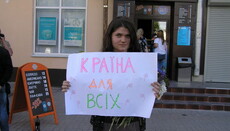Olga Panfilova came out with a picket to support the Kiev gay parade, "I understand that the March of Equality is unlikely to happen in Sumy, I just wanted to openly declare my position and invited my friends to join me," says Olga. "I feel bitter about the fact that people with homosexual orientation are treated most negatively in our city, they would be willingly sent to some ghetto.