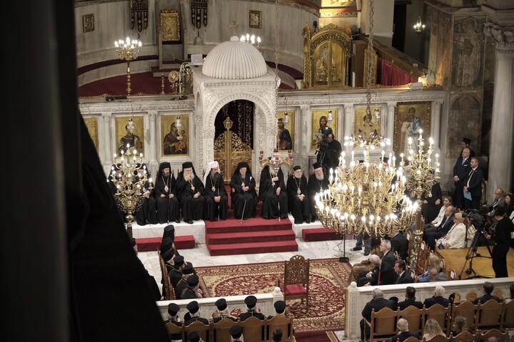 At 1 p.m., the official opening of the Pan-Balkan Photo Exhibition “Champion General of the Oikoumene: Saint Demetrios the Myrrh-Streamer in the Balkans” was held in the presence of the Patriarch of Constantinople, Orthodox Primates and representatives, and the President of the Republic.