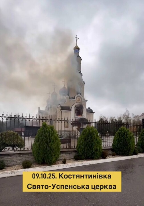 KOSTIANTYNIVKA — On Oct. 9, 2025, in Kostiantynivka, Donetsk region, the Dormition Cathedral of the Ukrainian Orthodox Church (UOC) was destroyed by fire following a shelling, according to a report from the Pokrovsk Vicariate.