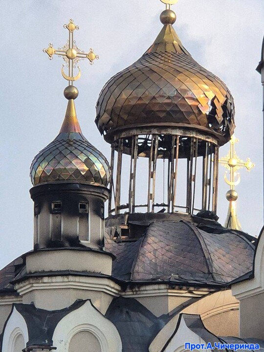 The outer walls of the church remained standing, but the dome and interior were completely destroyed. Inside the cathedral, everything was consumed by flames. Details of the shelling were not provided. It remains unknown whether the cathedral can be restored.