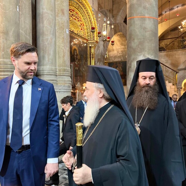 According to a release from the Jerusalem Patriarchate, while visiting with Vance at the site of Jesus Christ's crucifixion, burial, and resurrection, His Beatitude Pat. Theophilos III "conveyed his respectful greetings to President Donald J. Trump and expressed his heartfelt appreciation for the efforts of the United States administration, under President Trump’s leadership, to bring about a ceasefire in Gaza and to alleviate the suffering of the innocent."