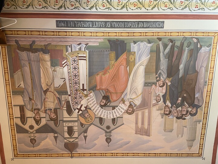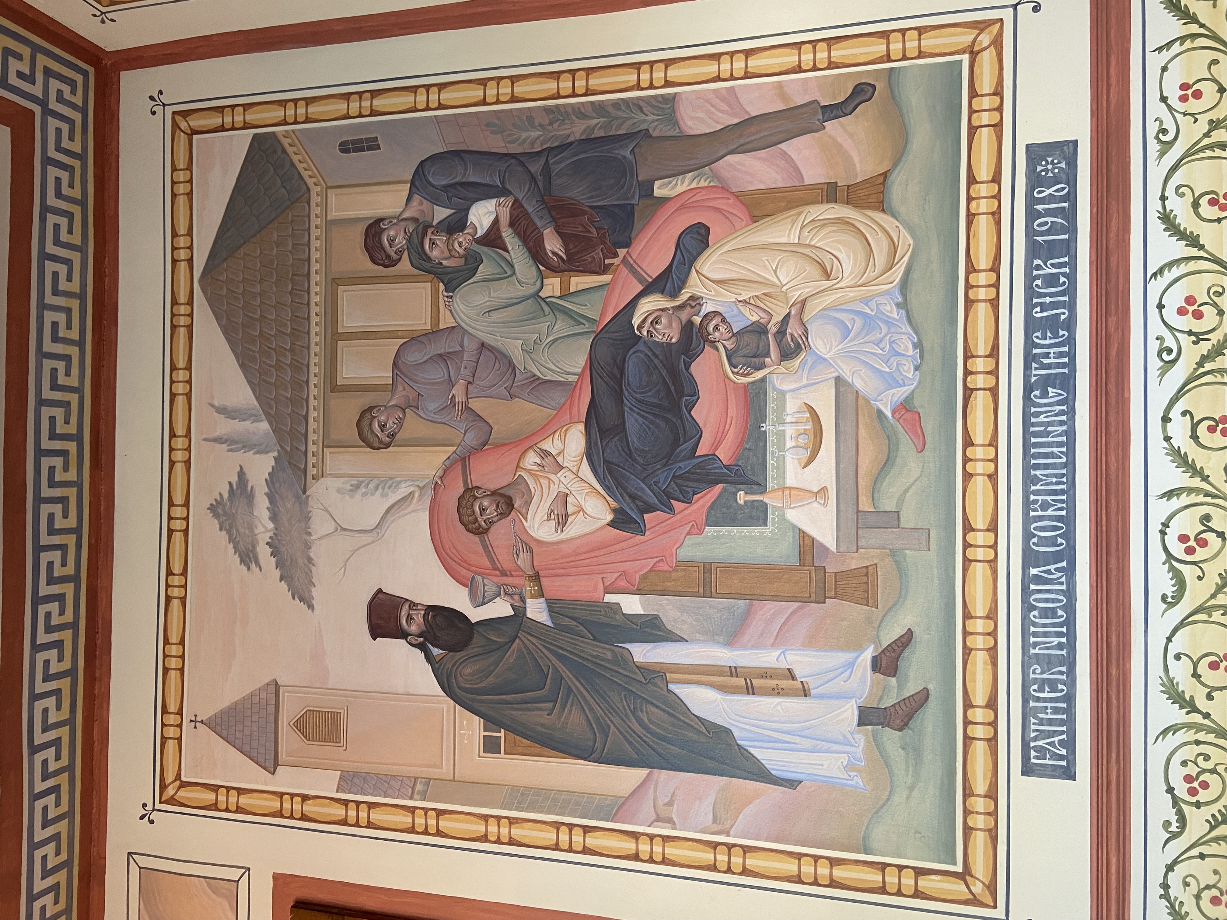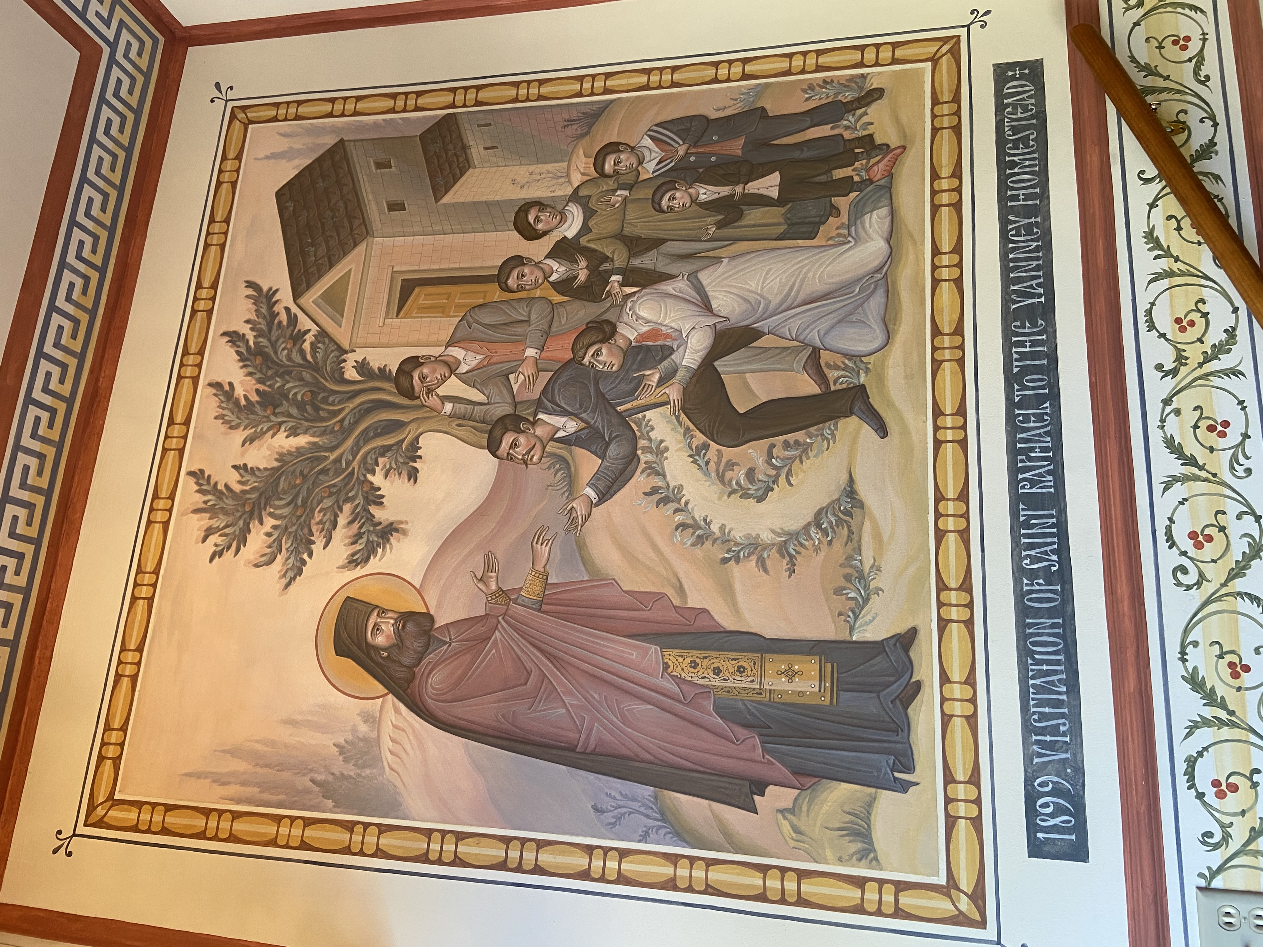 When one enters St. George in Kearney, Neb., they are immediately in the presence of iconography depicting the holy man. To the left is a depiction of St. Raphael’s visit to the Yanney homestead in 1899, in the center is a depiction of Fr. Nicola communing the sick in 1918, and to the right is the ordination of Fr. Nicola by St. Raphael in New York, 1904.