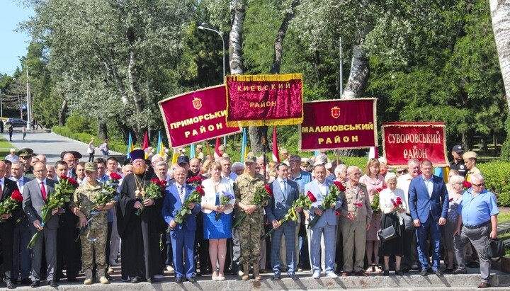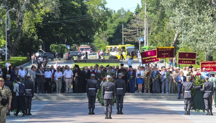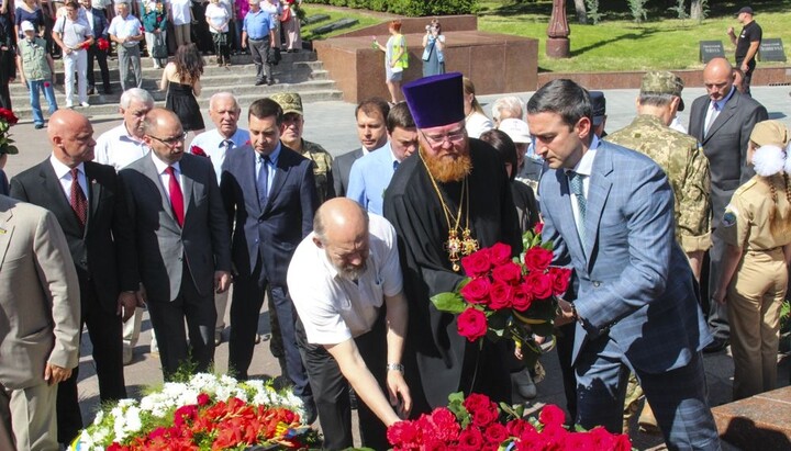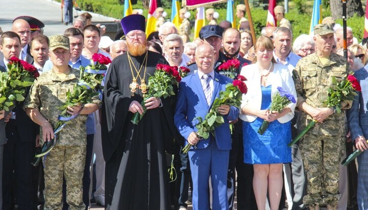 The Dean of temples of the Odessa diocese, Archpriest Pavel Poleshchuk took part in laying flowers to the Unknown Sailor Memorial on the Walk of Fame in T. G. Shevchenko Park.