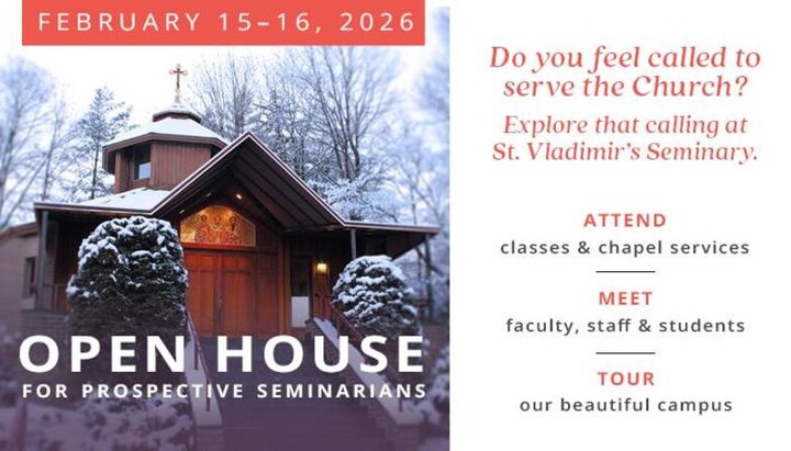 YONKERS, NY — St. Vladimir’s Orthodox Theological Seminary has announced its 2026 Winter Admissions Open House, scheduled for Sunday–Monday, February 15–16, on its campus at 575 Scarsdale Road. The event invites prospective students discerning a call to ministry or academic study to experience seminary life firsthand.