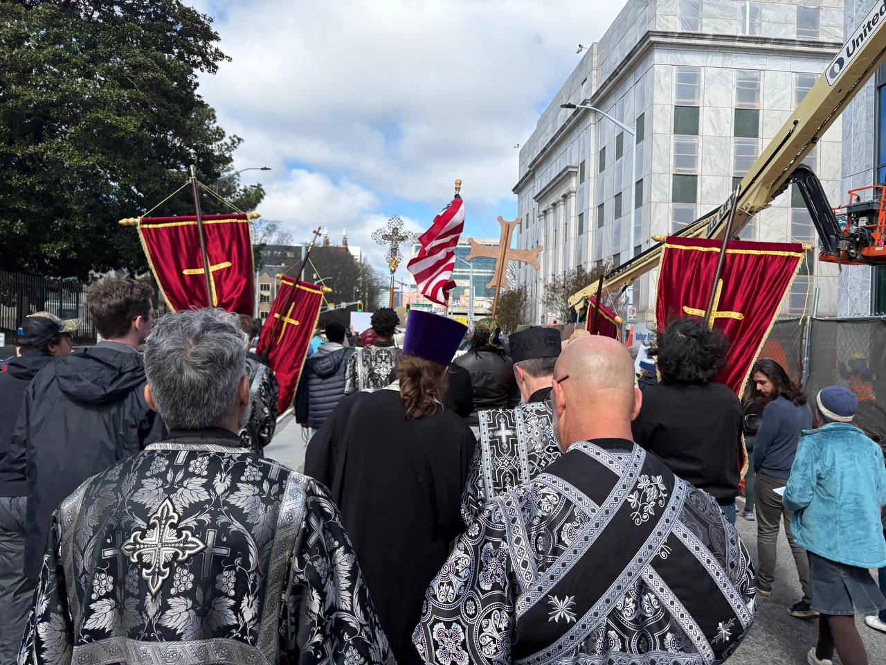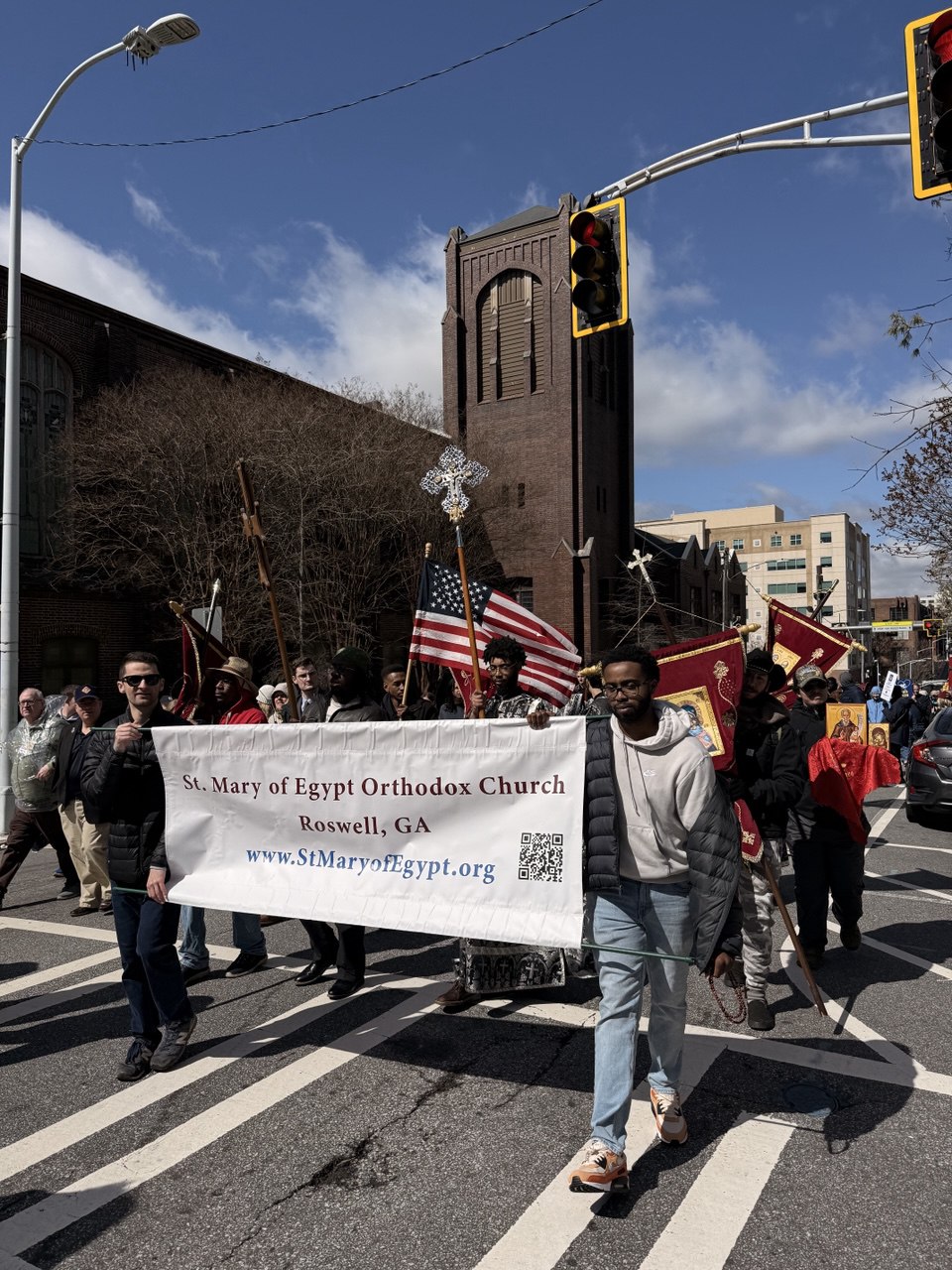 Other parishioners from different Orthodox parishes were present, including Holy Apostles Peter and Paul (Serbian), who helped to supply many of the banners seen at the March. Parishioners from Holy Transfiguration (Greek) and St. Elias (Antiochian), and St. Stephen (Antiochian)