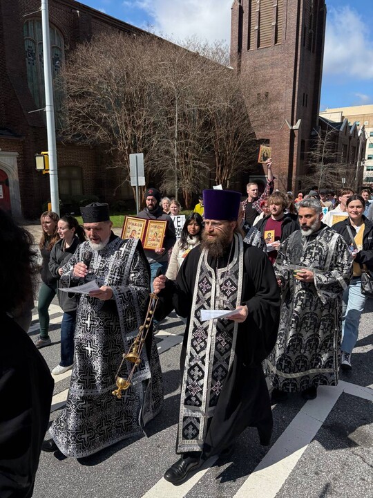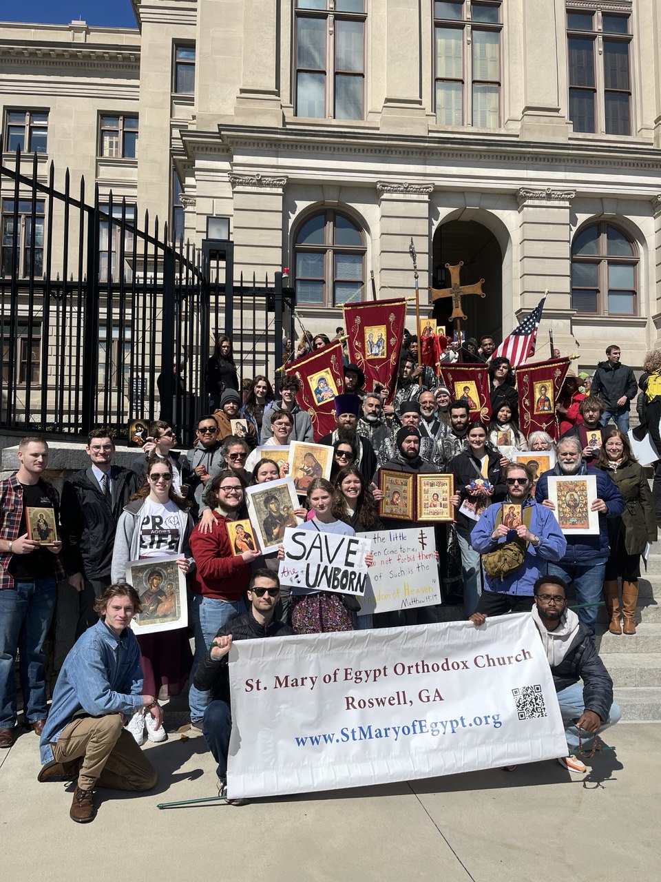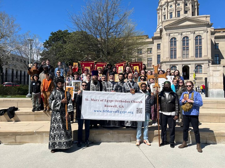 On March 12th, in Atlanta, Georgia, multiple Orthodox jurisdictions participated in a procession at the annual March for Life in Atlanta. Prior to the March, Fr. Daniel Iliev, and Dn. Mark King of St. Mary of Egypt Orthodox Church (ROCOR) held a molieben to the Mother of God at the capitol while the faithful held crosses and banners. A procession around the capital followed the service.