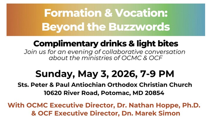 POTOMAC, MD — An evening program titled “Formation & Vocation: Beyond the Buzzwords” will take place Sunday, May 3, 2026, at Sts. Peter & Paul Antiochian Orthodox Christian Church in Potomac, Maryland, bringing together Orthodox leaders for reflection on ministry and calling.