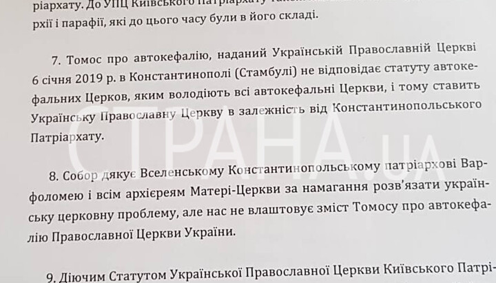 8. The Council thanks the Ecumenical Patriarch Bartholomew of Constantinople and all the hierarchs of the Mother Church for attempts to solve the Ukrainian church problem, but we are not satisfied with the content of the Tomos of autocephaly of the Orthodox Church of Ukraine.