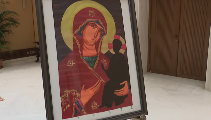 On May 13, 2023, during a meeting with the Pope, Volodymyr Zelensky presented the pontiff with an “icon” of the Mother of God with a black void instead of the Infant Jesus. The image is called “Loss of 2022-58”, its author is Ukrainian artist Oleksiy Revika, reports the Ukrayina Moloda resource. Despite the fact that journalists call Revika's work a "painting", it is very reminiscent of a parody of the Iberian Icon of the Most Holy Theotokos.