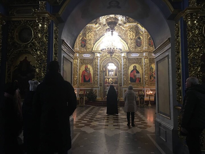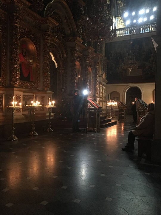 Empty Dormition Cathedral of Lavra during "Christmas service" shown online
