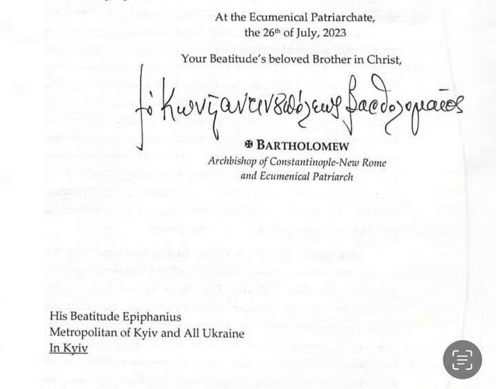 On September 1, a publication close to the OCU released an unofficial Ukrainian translation of a letter dated July 26, 2023, from Constantinople Patriarch Bartholomew to Epifaniy (Dumenko). The letter, reportedly delivered to its recipients on the eve of the OCU’s "council" on July 27, addressed what the statute of the OCU should entail. According to the article, the wishes of Patriarch Bartholomew were not publicly mentioned at the OCU "council," as reported by media quoting participants of the event.