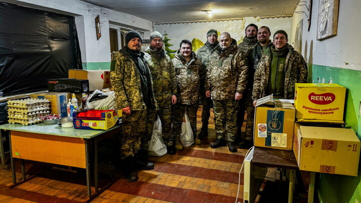 Father Nestor also brought the servicemen food supplies for their festive table.